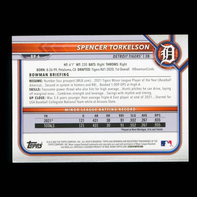 Spencer Torkelson 2022 Bowman Prospects Tigers