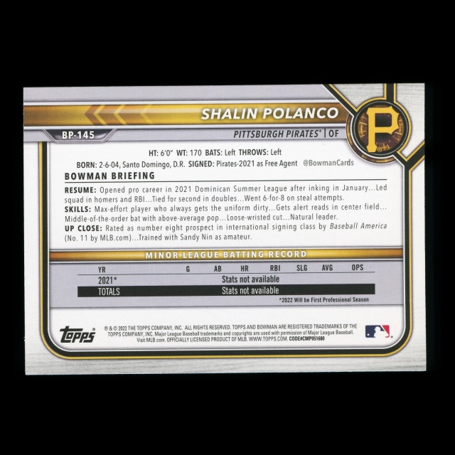 Shalin Polanco 2022 Bowman Prospects Pirates