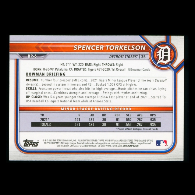 Spencer Torkelson 2022 Bowman Prospects Tigers