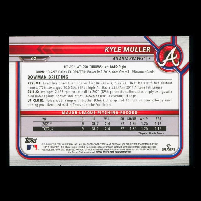 Kyle Muller RC 2022 Bowman Rookie Braves