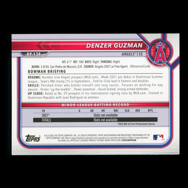 Denzer Guzman 2022 Bowman 1st Prospect Angels