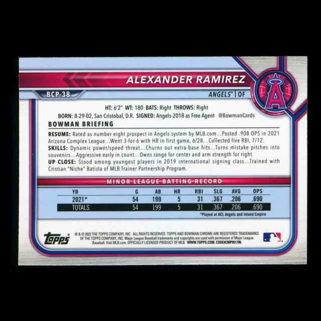 Alexander Ramirez 2022 Bowman Chrome Prospects Angels