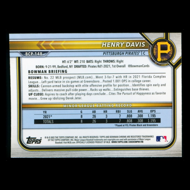 Henry Davis 2022 Bowman Chrome Prospects Pirates