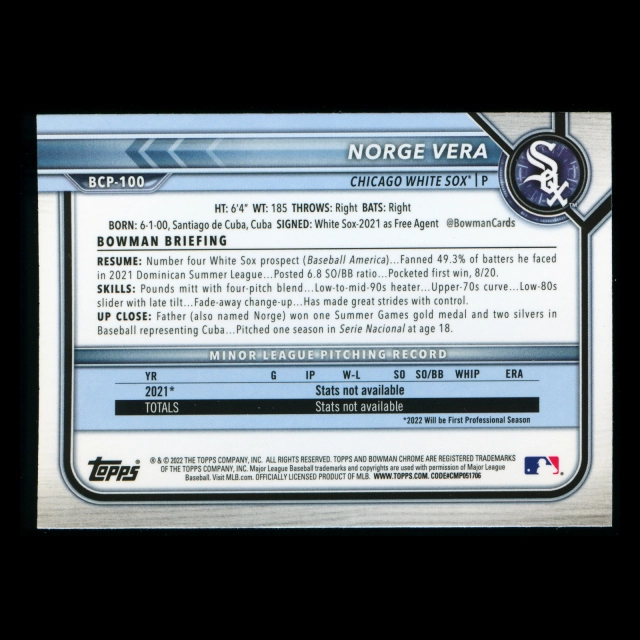 Norge Vera 2022 Bowman Chrome 1st Bowman Prospects White Sox