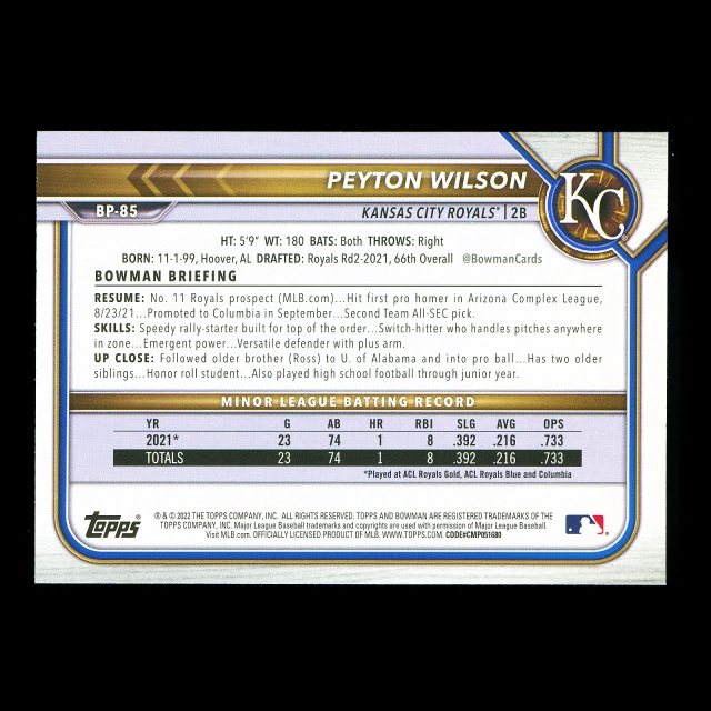 Peyton Wilson 2022 Bowman Prospects 1st Bowman Royals