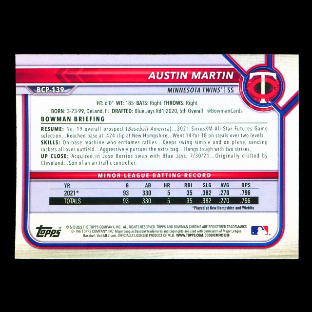 Austin Martin 2022 Bowman Chrome Prospects Twins
