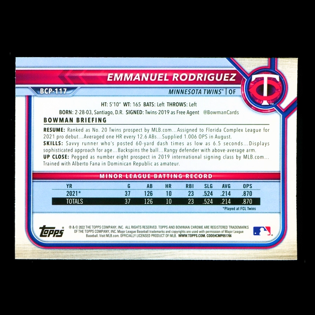 Emmanuel Rodriguez 2022 Bowman Chrome Prospects Twins