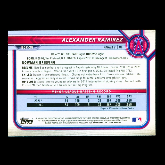 Alexander Ramirez 2022 Bowman Chrome Prospects Angels