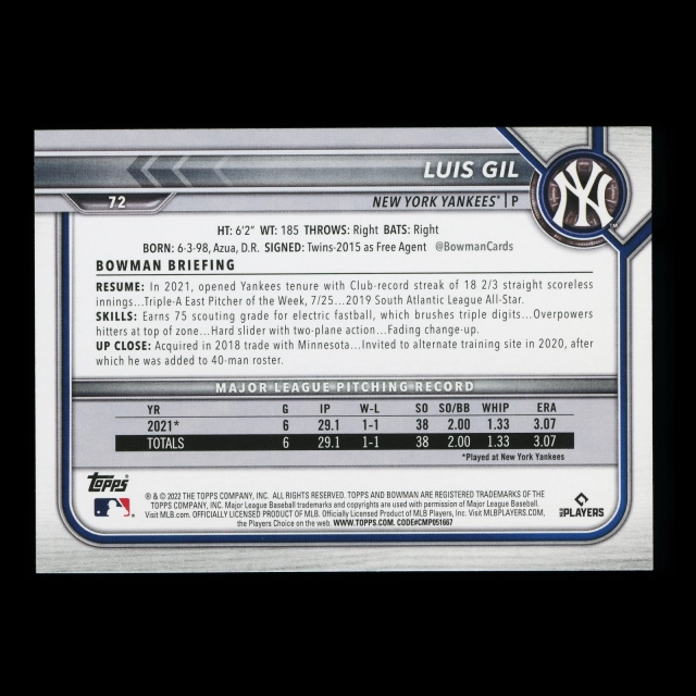 Luis Gil RC 2022 Bowman Rookie Yankees