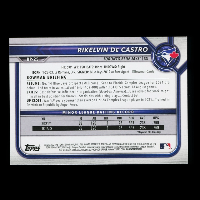 Rikelvin De Castro 2022 Bowman Prospects Blue Jays