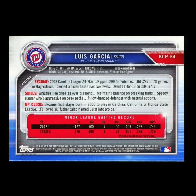 Luis Garcia 2019 Bowman Chrome Prospects Nationals