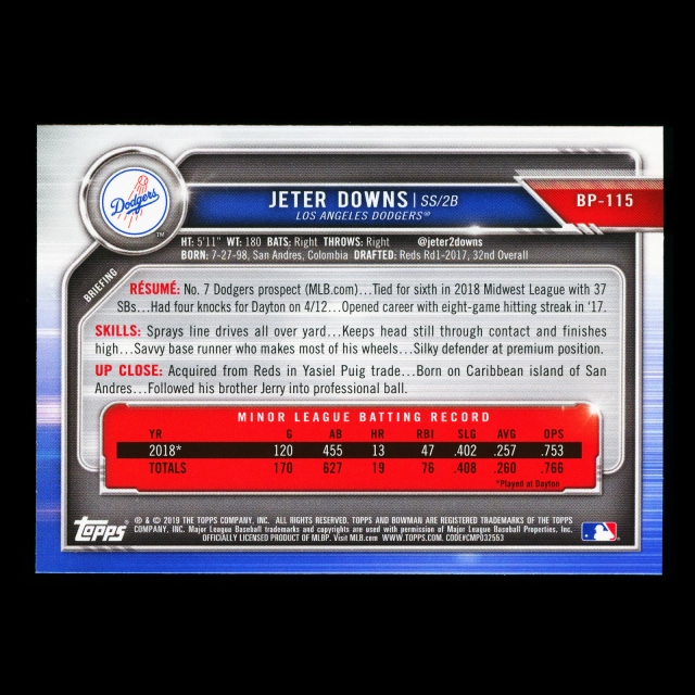Jeter Downs 2019 Bowman Prospects Dodgers