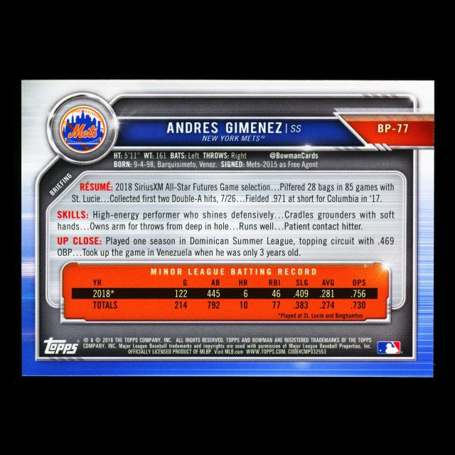 Andres Gimenez 2019 Bowman Prospects Mets