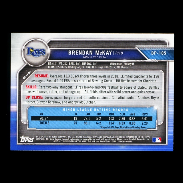 Brendan McKay 2019 Bowman Prospects Rays