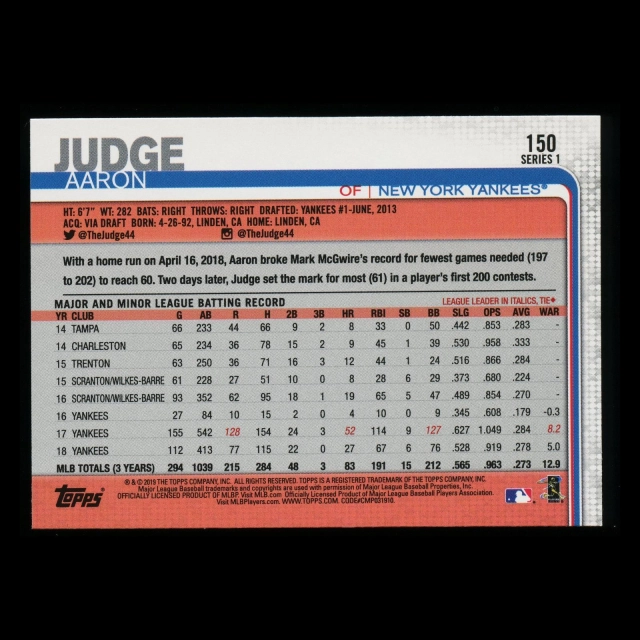 Aaron Judge 2019 Topps Yankees