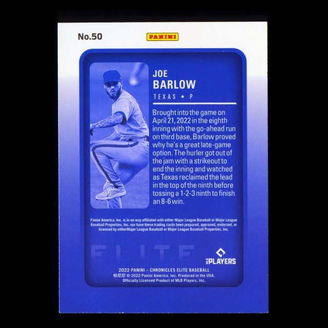 Joe Barlow RC 2022 Elite Rookie Rangers