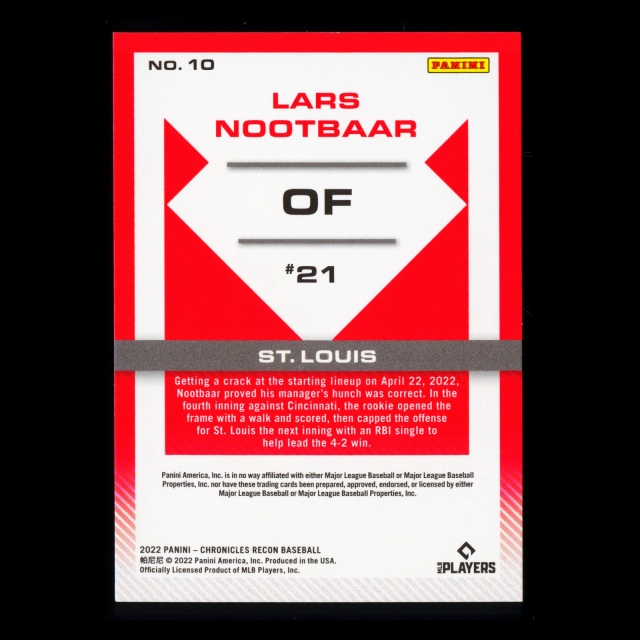 Lars Nootbaar RC 2022 Recon Rookie Cardinals
