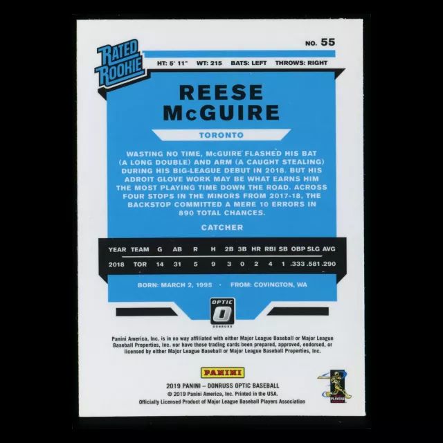 Reese McGuire RR 2019 Optic Rated Rookie Blue Jays
