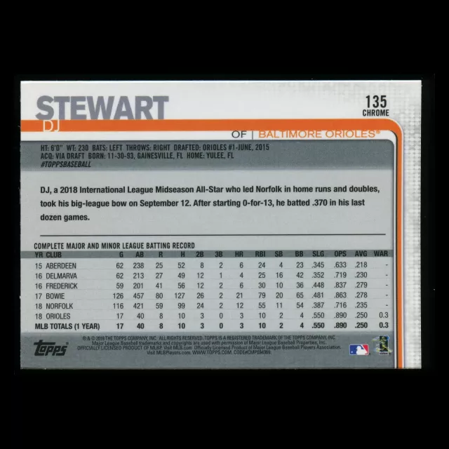 DJ Stewart RC 2019 Topps Chrome Rookie Orioles
