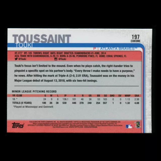 Touki Toussaint RC 2019 Topps Chrome Rookie Braves