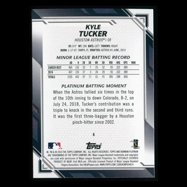 Kyle Tucker RC 2019 Bowman Platinum Rookie Astros