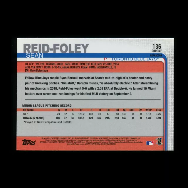 Reid-Foley RC 2019 Topps Chrome X-Fractor Rookie Blue Jays