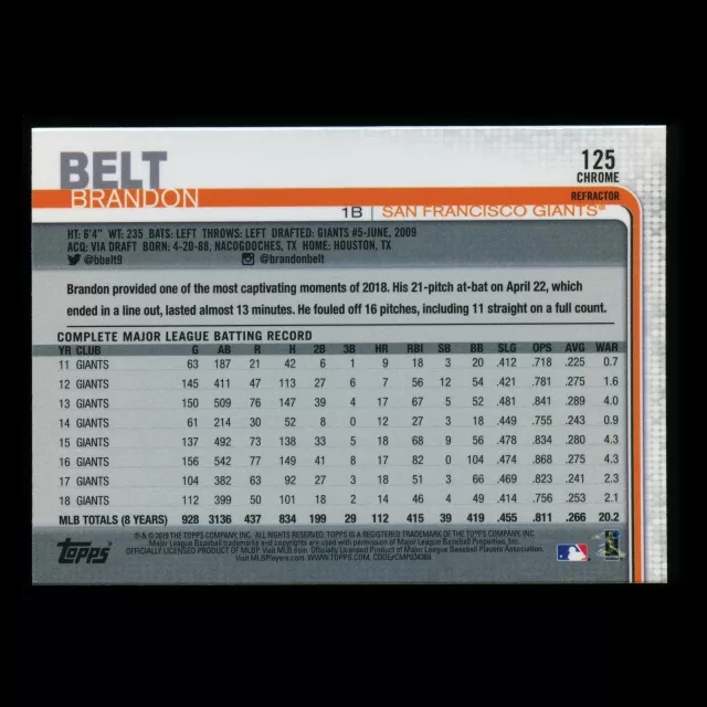 Brandon Belt 2019 Topps Chrome X-Fractor Giants