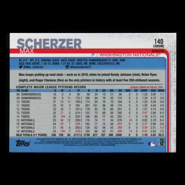 Max Scherzer 2019 Topps Chrome X-Fractor Nationals