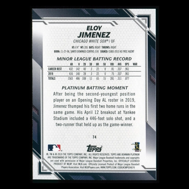 Eloy Jimenez RC 2019 Bowman Platinum Rookie White Sox