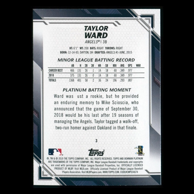 Taylor Ward RC 2019 Bowman Platinum Rookie Angels