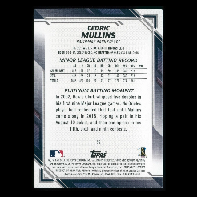 Cedric Mullins RC 2019 Bowman Platinum Rookie Orioles
