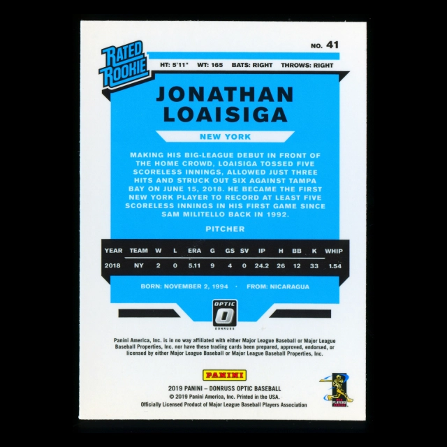 Jonathan Loaisiga RR RC 2019 Donruss Optic Rookie Yankees