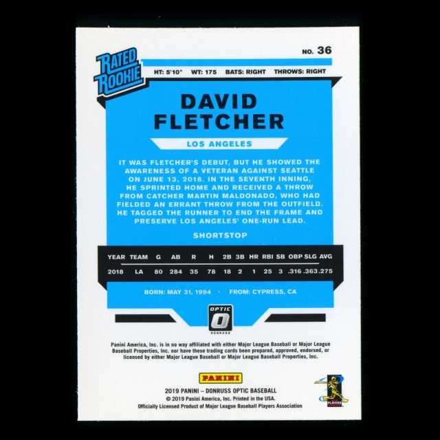 David Fletcher RR RC 2019 Donruss Optic Rookie Angels