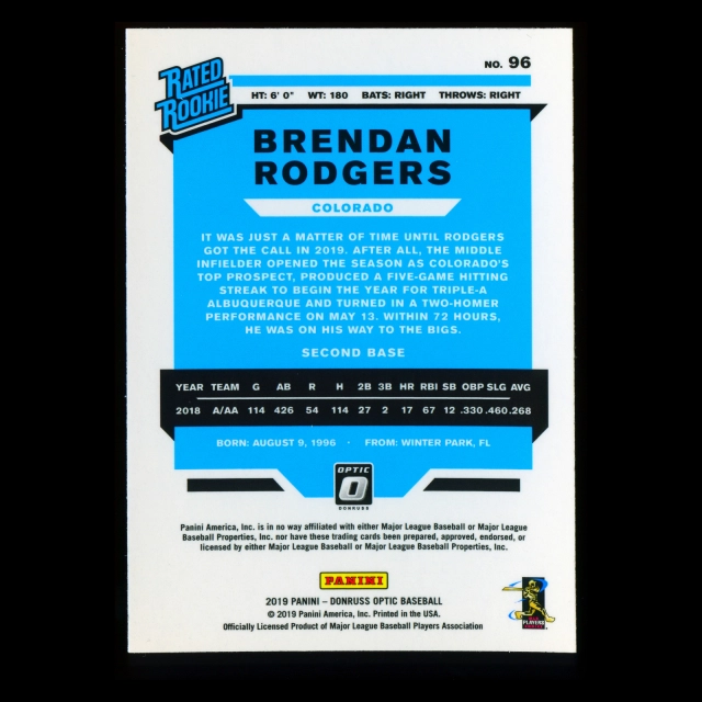 Brendan Rodgers RR RC 2019 Donruss Optic Rookie Rockies