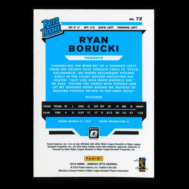 Ryan Borucki RR RC 2019 Donruss Optic Rookie Blue Jays