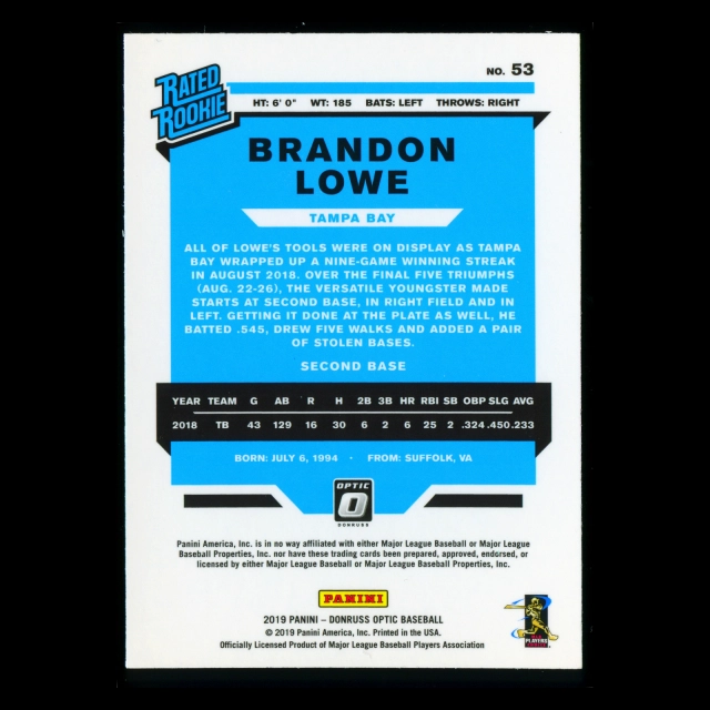 Brandon Lowe RR RC 2019 Donruss Optic Rookie Rays