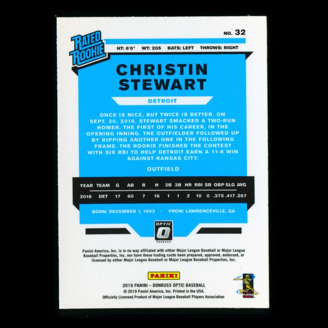 Christin Stewart RR RC 2019 Donruss Optic Rookie Tigers