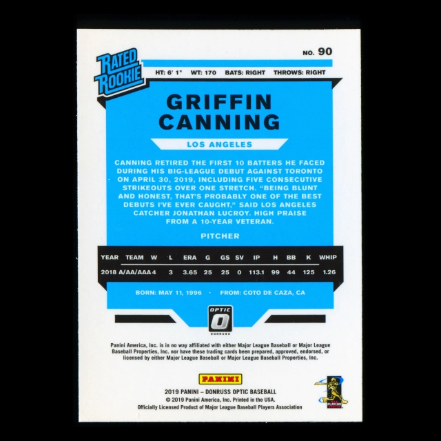 Griffin Canning RR RC 2019 Donruss Optic Rookie Angels