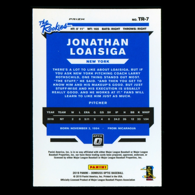 Jonathan Loaisiga 2019 Donruss Optic The Rookies Holo Yankees