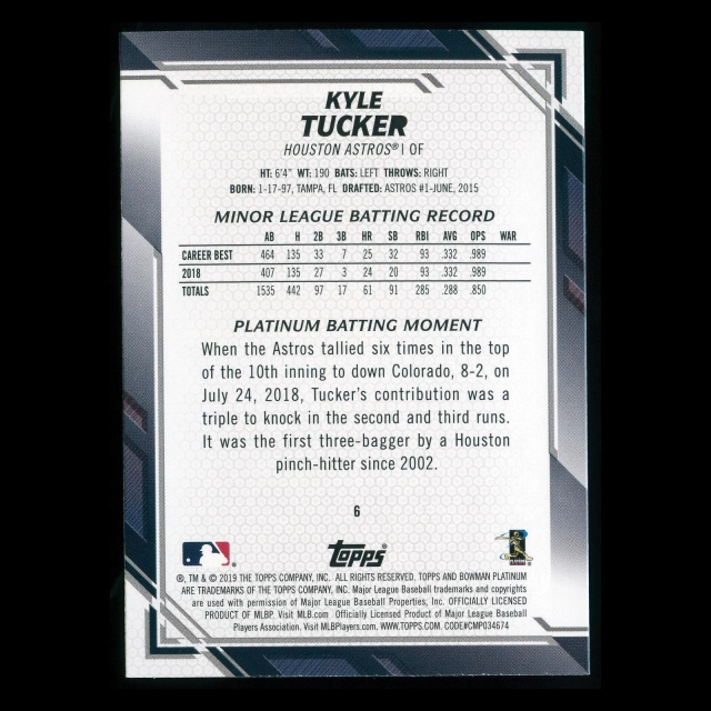 Kyle Tucker RC 2019 Bowman Platinum Rookie Astros
