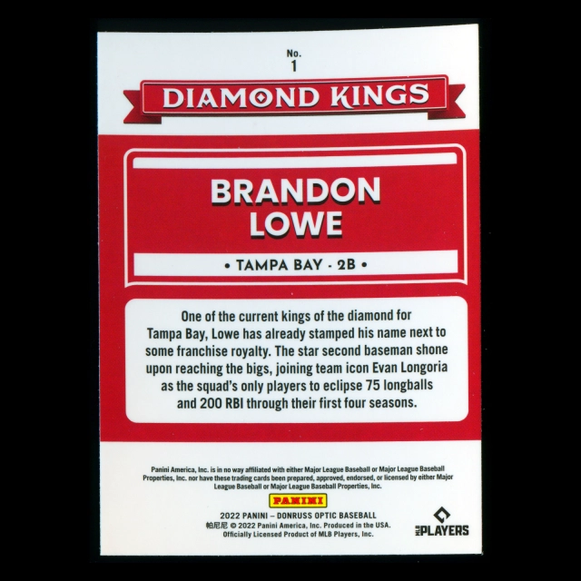 Brandon Lowe 2022 Donruss Optic Diamond Kings Rays