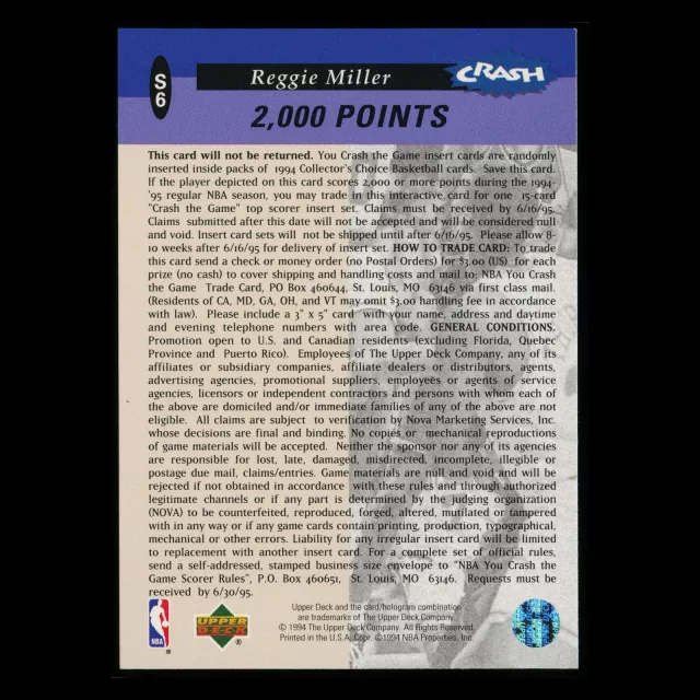 Reggie Miller 1994-95 UD Collector's Choice You Crash the Game Pacers