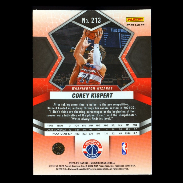 Corey Kispert RC 2021-22 Panini Mosaic Mosaic Green Rookie Grizzlies