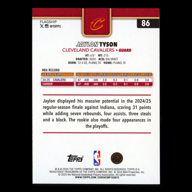 Jaylon Tyson 2025-26 Topps Rainbow Foil Cavaliers