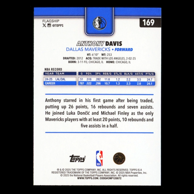 Anthony Davis 2025-26 Topps Gold Mavericks 1961/2025