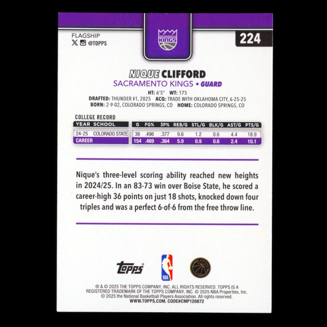 Nique Clifford RC 2025-26 Topps Rookie Kings
