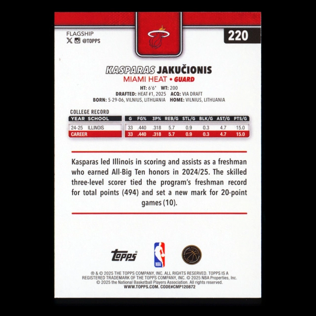 Kasparas Jakuionis RC 2025-26 Topps Rookie Heat