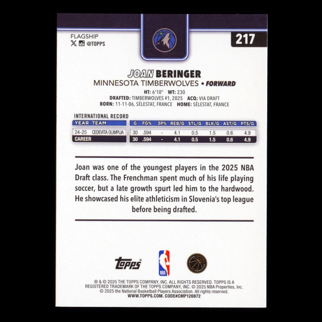 Joan Beringer RC 2025-26 Topps Rookie Timberwolves
