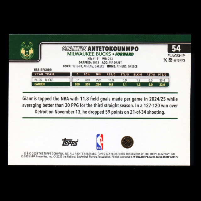 Giannis Antetokounmpo 2025-26 Topps Bucks