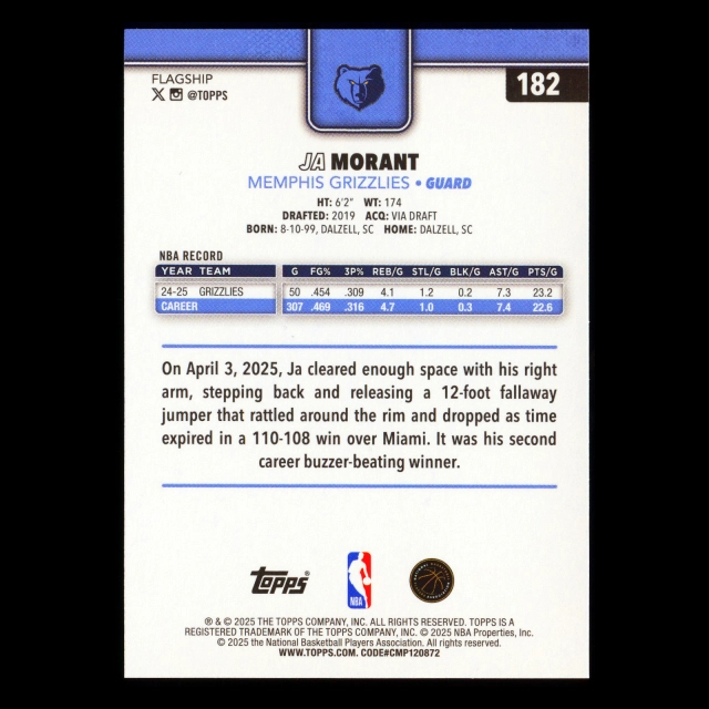Ja Morant 2025-26 Topps Grizzlies
